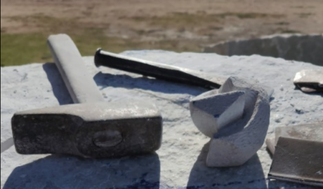 Esta tarde estuvimos recorriendo la playa Copacabana donde varios escultores, entre ellos, Mario Amurri, coordinador de este encuentro, comenzaron con la tardea de trabajar y darle forma a la piedra.